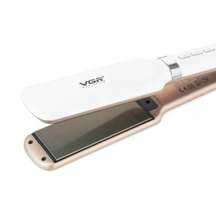 اتو مو وی جی آر مدل V-520 صفحه سرامیکی با عرض ۴۰ میلیمتر قابلیت گرمایش سریع (PTC) مناسب استفاده حرفهای، مناسب کراتینه مو دارای صفحه نمایش روی بدنه دستگاه قابلیت تنظیم دما از ۱۴۰ تا ۲۲۰ درجه سانتیگراد را دارد.