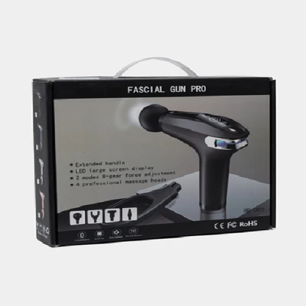 ماساژور تفنگی fascial gun pro مدلHB-005 که گاهی با نام ماساژورکوبه ای یا گان شناخته می شود. این ماساژور ها با تکنیک ضربه ای و ارتعاشی ماساژ را با اعمال فشار مکرر به عضلات در حرکتی سریع به سمت بالا و پایین شبیه سازی می کند. ماساژور تفنگی fascial gun pro مدلHB-005 دارای طراحی ارگومونیک است و کیفیت و طراحی فوق العاده کاربردی و مناسب برای مراکز و استفاده شخصی دارد. ماساژور فشیال گان پرو دارای صفحه نمایش LCD ، دارای دو نوع ماساژ ضربه ای و لرزشی، پورت شارژ، کابل شارژ تایپ C، دارای 4 عدد سری، هشت سرعت قابل کنترل، دارای تایمر پانزده دقیقه ای، رقص نور، دارای صحفه نمایشگر میزان شارژ، دارای دکمه خاموش و روشن که کار تنظیم شدت را هم انجام می دهد و دسته ای با قابلیت اتصال و جداسازی است که در دفترچه راهنمای آن همه موارد موجود است. این دسته دسترسی شما به نقاط دور بدن مانند کمر را فراهم می کند. از خصوصیات بارز این ماساژور که باعث متفاوت بودن آن با ماساژور سولاکس و ام جی 70 شده سبکی ان است که باعث استفاده راحت این وسیله شده است.