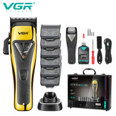 - ماشین اصلاح حجم زن وی جی آر مدل V-015 یک دستگاه حرفهای با تیغههای DLC، موتور 9000 دور در دقیقه، باتری 2500 میلیآمپری و طراحی ارگونومیک است که برای حجمزنی و سایهزنی مناسب است.