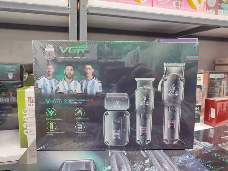 ست چندکاره ماشین اصلاح خط زن و حجم زن و شیور وی جی آر مدل V-675 S3 یکی از جدیدترین و به روزترین محصولات شرکت وی جی آر میباشد. این پک متشکل از ماشین اصلاح حجم زن و خط زن و شیور است شما با خرید ست وی جی آر V-675 S3 برای سالها بی نیاز از خرید محصولات مشابه خواهید بود.این ست ضد آب می باشد و دارای گواهی ipx6 می باشد.