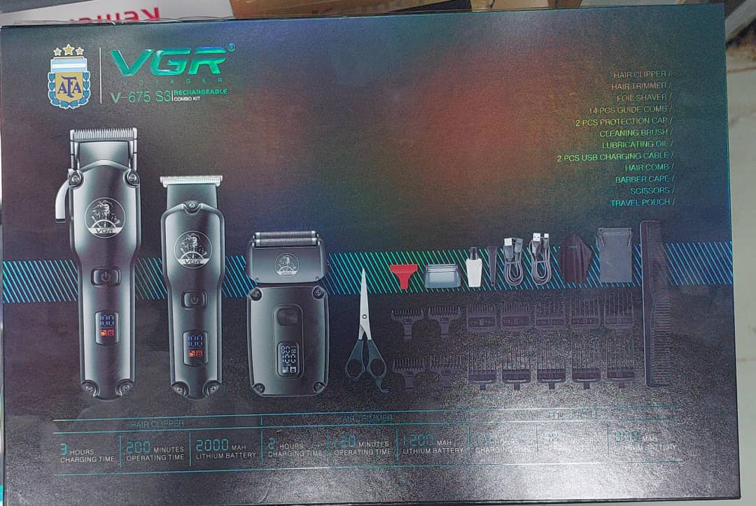 ست چندکاره ماشین اصلاح خط زن و حجم زن و شیور وی جی آر مدل V-675 S3 یکی از جدیدترین و به روزترین محصولات شرکت وی جی آر میباشد. این پک متشکل از ماشین اصلاح حجم زن و خط زن و شیور است شما با خرید ست وی جی آر V-675 S3 برای سالها بی نیاز از خرید محصولات مشابه خواهید بود.این ست ضد آب می باشد و دارای گواهی ipx6 می باشد.